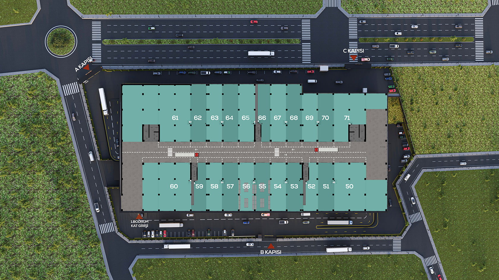 Staria, ulaşım açısından benzersiz bir konuma sahip. Şehrin ana arterlerine ve toplu taşıma araçlarına yakınlığı sayesinde hem çalışanlarına hem işletmelere kolaylık sağlıyor. Bu sayede gün içinde zaman kaybı yaşamadan işlerin sorunsuz yürümesine imkân tanıyor.